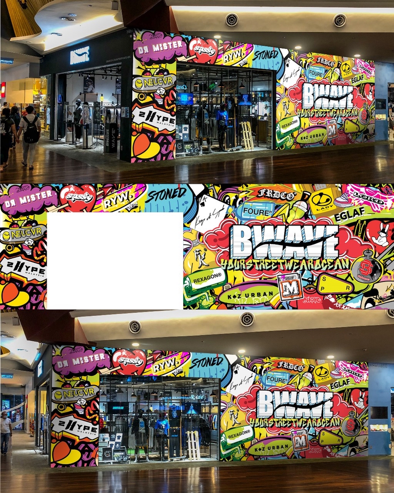 Store wallpaper design untuk Malaysia streetwear store. Design wallpaper dengan tema graffiti dilengkapi dengan 15 logo fashion brand Korea. Dibuat menggunakan Wacom (sketching dan coloring) dengan aplikasi Photoshop dan illustrator. Di export dengan file resolusi tinggi siap cetak. Langkah Pekerjaan 1. Brief Design 2. Pengumpulan document / Source yang diperlukan 3. Perngejaan sketsa 4. Acc sketsa 5. Inking coloring 6. Revisi tahap 1 sampai 3 7. Final image 8. File asli dan high resolution image