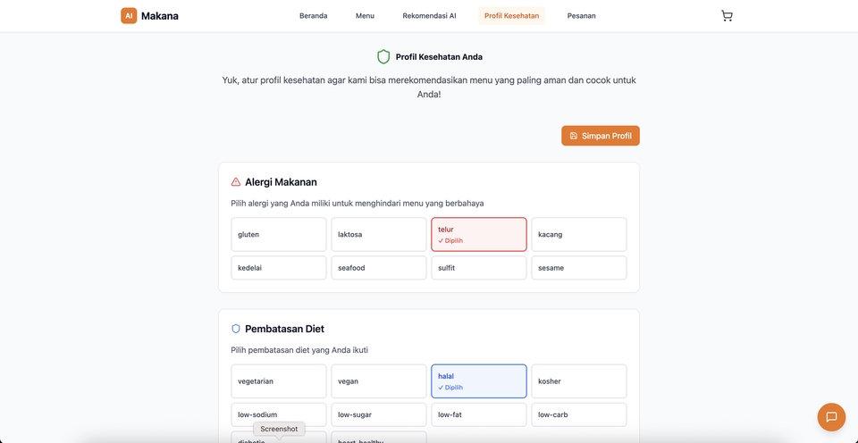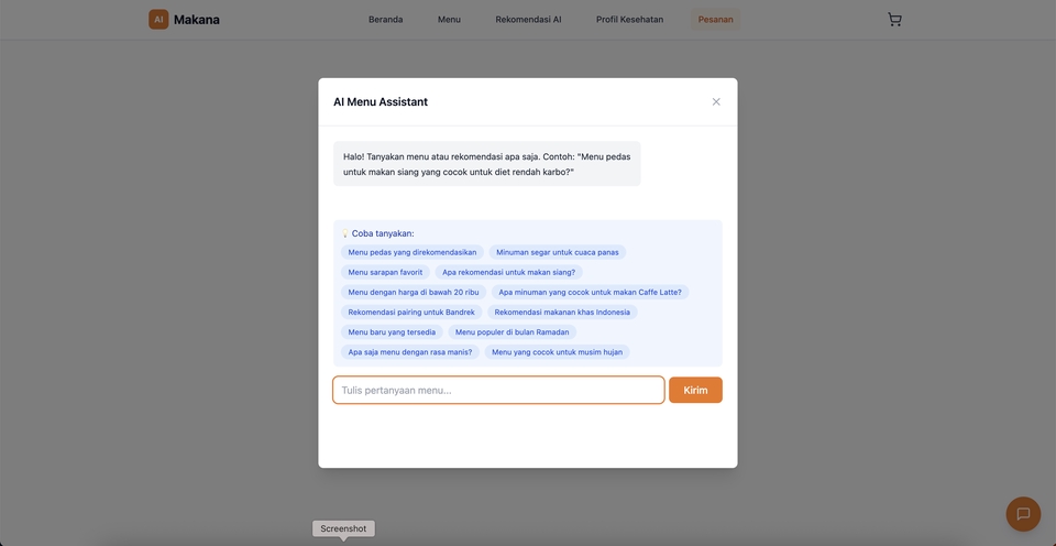 - • AI personalisasi menu