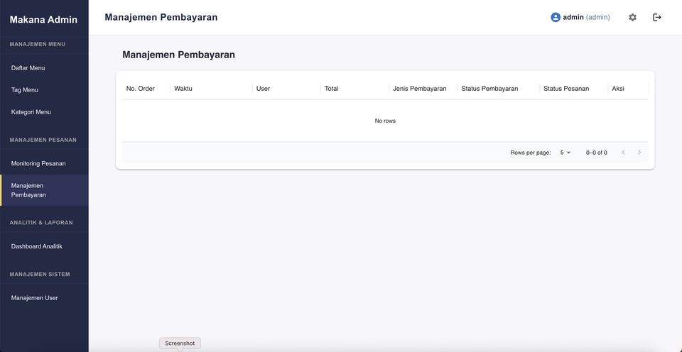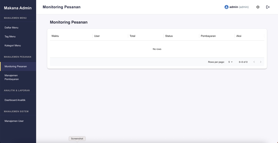 - • Dashboard pesanan sederhana