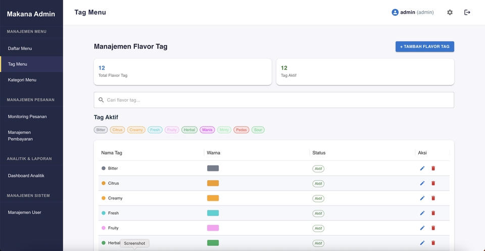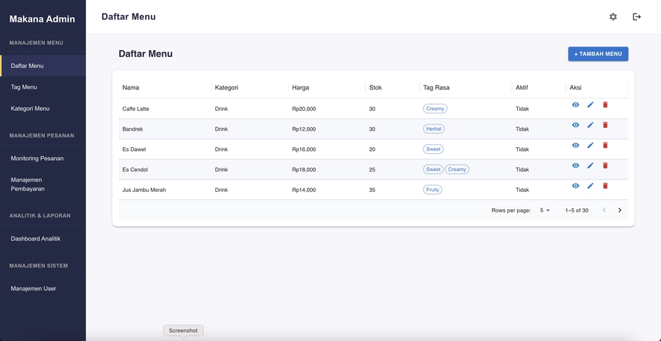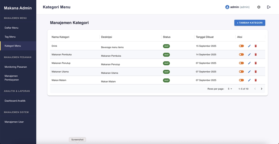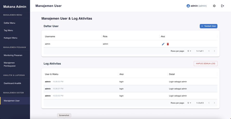 - • Akses admin sederhana untuk update menu