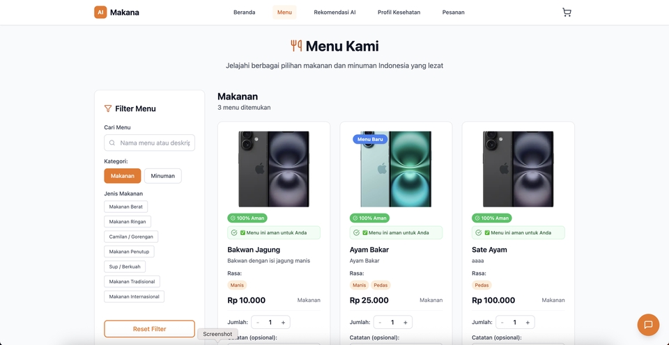 ⭐ Jasa Pembuatan E-Katalog AI Restoran & Kafe — Pemesanan & Pembayaran Tanpa Login (QR Code Menu Digital) Apakah Anda ingin restoran atau kafe Anda memiliki menu digital modern, yang memungkinkan pelanggan melihat menu, memesan makanan, dan melakukan pembayaran QRIS tanpa login? Saya menyediakan Jasa Pembuatan E-Katalog AI untuk Restoran & Kafe, dirancang khusus agar proses order lebih cepat, efisien, dan meningkatkan pengalaman pelanggan. Cukup scan QR Code → pilih menu → masukkan ke keranjang → bayar. Tidak perlu login, tidak perlu aplikasi tambahan, dan sangat mudah digunakan oleh pelanggan dari segala usia. E-Katalog AI ini cocok untuk: ✔ Restoran ✔ Kafe ✔ Coffee shop ✔ Food stall ✔ Cloud kitchen ✔ Food court ✔ UMKM kuliner ✔ Bisnis franchise F&B Dengan sistem modern ini, restoran Anda terlihat lebih profesional, hemat waktu, dan mampu meningkatkan omzet. 💡 Kenapa Jasa E-Katalog AI Kami Lebih Unggul? 1. AI Cerdas (Lebih Baik dari Katalog Biasa) Tidak seperti menu digital konvensional, katalog kami sudah dilengkapi fitur AI: - AI Search Pintar (ketik “pedas”, “manis”, “keju”, langsung muncul menu terkait). - AI Rekomendasi Menu Populer untuk meningkatkan penjualan. - AI Upselling otomatis untuk menawarkan menu tambahan. Teknologi ini membuat E-Katalog Anda lebih pintar dan lebih menarik untuk pelanggan. 2. Tanpa Login — 100% Praktis untuk Pelanggan Banyak pelanggan malas login. Sistem kami tidak membutuhkan akun, sehingga: - Proses order lebih cepat - Pelanggan bisa langsung pesan dari meja - Mengurangi antrean di kasir - Hanya butuh QR Code di meja, selesai! 3. Pembayaran QRIS Terintegrasi - Pelanggan bisa langsung bayar melalui: QRIS, E-wallet (OVO, GoPay, Dana, ShopeePay), dan Transfer otomatis - Pembayaran langsung tercatat di sistem admin. Note: Konfigurasi atau credential ditanggung oleh client 4. Desain Modern & Mobile-Friendly - Kami membuat UI/UX yang bersih, cepat, dan nyaman diakses melalui HP. - Menu terlihat lebih premium dan profesional. 5. Dashboard Admin Lengkap (Akan Anda Dapatkan) Anda bisa mengelola: - Menu makanan & minuman - Harga & stok - Laporan penjualan harian / bulanan - Pesanan masuk secara real-time - Kategori menu (snack, coffee, non-coffee, makanan berat, dessert) 6. Hemat Waktu & Mengurangi Beban Pelayan Dengan menu digital: - Pelayan tidak perlu mencatat pesanan - Mengurangi human error - Mempercepat rotasi meja - Pelanggan bisa pesan kapan saja tanpa menunggu waiter - Restoran lebih tertata dan efisien. 🍽️ Fitur Lengkap E-Katalog AI Restoran & Kafe Fitur Utama - Menu digital QR Code - Tanpa login - Keranjang & checkout otomatis - AI search pintar - AI rekomendasi menu - Pembayaran QRIS & e-wallet - Notifikasi pesanan ke dapur - Sistem catatan pesanan (request khusus) - Guest checkout Admin Panel - Tambah/Edit menu - Upload foto makanan - Kelola kategori - Laporan penjualan - Monitoring pesanan - Pengaturan meja & order Opsional (Jika Dibutuhkan) - Multi-cabang - Stok otomatis berkurang saat order 🚀 Manfaat Besar Untuk Bisnis Anda - Proses pemesanan jauh lebih cepat - Meningkatkan kepuasan pelanggan - Mengurangi antrean panjang - Tidak perlu buku menu fisik - Tampil modern dan profesional - Mendorong pelanggan memesan lebih banyak via rekomendasi AI - Update menu kapan saja tanpa biaya cetak 🔧 Alur Pengerjaan (Lebih Profesional & Rapi) - Identifikasi Kebutuhan Membahas konsep menu, alur pesanan, metode pembayaran, dan branding. - Pembuatan Sistem E-Katalog AI Integrasi fitur AI, pemesanan tanpa login, keranjang, dan QR Code. - Integrasi Pembayaran QRIS Menyambungkan sistem agar bisa menerima pembayaran langsung. - Testing & Debugging Memastikan semua alur pesanan berjalan mulus. - Go-Live & Pelatihan Penggunaan Anda diberikan panduan lengkap penggunaan dashboard admin.