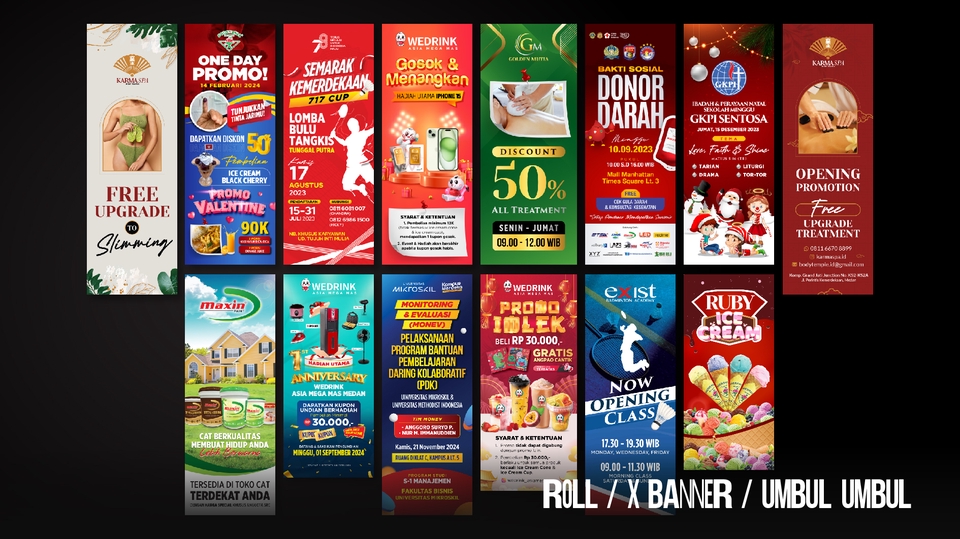 JASA DESAIN POSTER, SPANDUK, ROLL / X-BANNER, MINI / TRIPOD BANNER, BALIHO, UMBUL-UMBUL, DLL