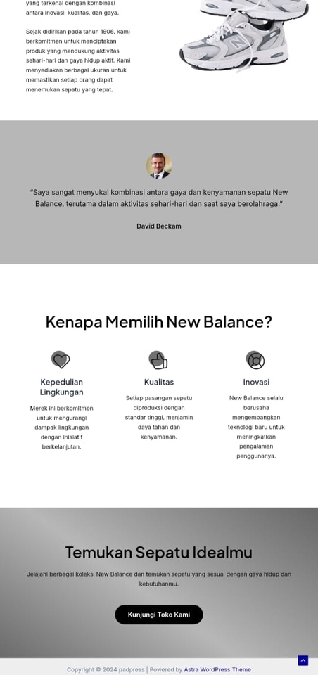 Website yang saya buat bertujuan untuk pengunjung yang memiliki minat untuk membeli, copywriting saya buat sendiri, dan desain web saya buat style monocrome untuk menampilkan kesan yang simple namun elegan, dan pemilihan gambar konten saya juga yang mengatur untuk menjaga nilai estetika dari perpaduan warna pada website. Langkah Pekerjaan 1. Deal pemesanan 2. Meeting konsep dan tujuan produk 3. Membuat isi konten dengan copywriting 4. Membuat desain bahan mock up atau gambar produk terkait 5. Menentukan style desain web 6. Memasukkan domain yang diperlukan untuk web, beserta ssl (server tergantung request milik saya/ pribadi klien yang menyediakan) 7. Membuat style web dan memasukkan isi konten yang telah disiapkan 8. Website jadi dan diberikan kepada klien
