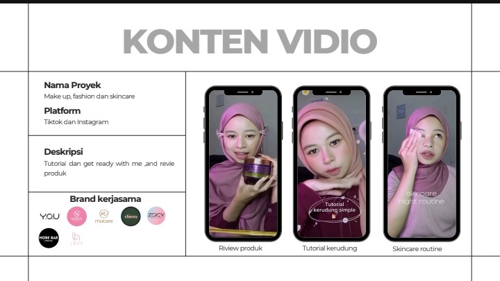 Saya adalah konten kreator aktif di TikTok dan Instagram, terbiasa membuat konten seputar [beauty/lifestyle/skincare]. Terbuka untuk kerja sama seperti endorsement, content review, hingga voice over. Siap bantu brand Anda tampil lebih menarik dengan konten yang kreatif dan relevan.