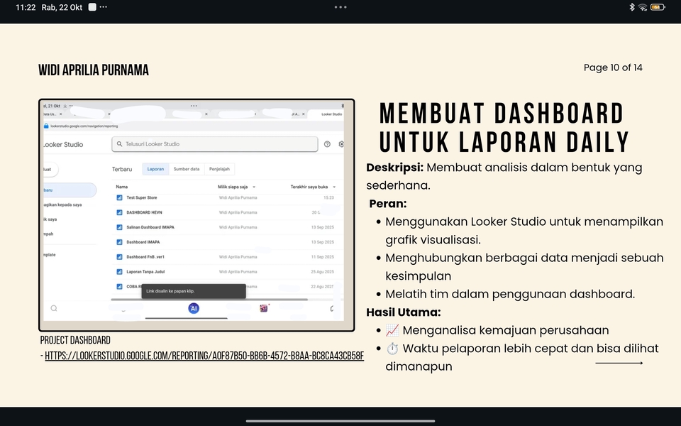 Berpengalaman lebih dari tiga tahun di bidang finance dan accounting perusahaan Food & Beverage. Kini saya membantu UMKM dan profesional meningkatkan efisiensi melalui jasa pengetikan, pengelolaan keuangan, dan pembuatan dashboard Looker Studio. Teliti, tepat waktu, dan berorientasi hasil.