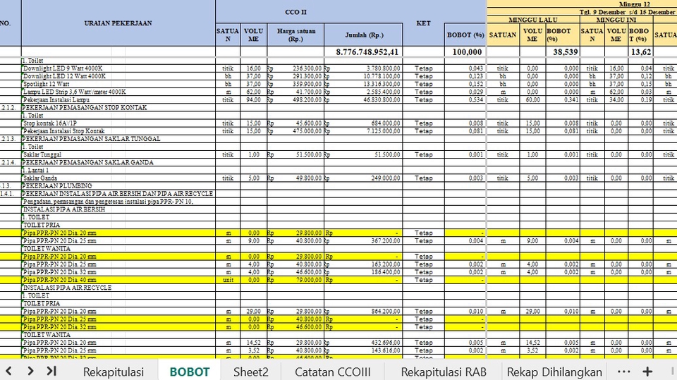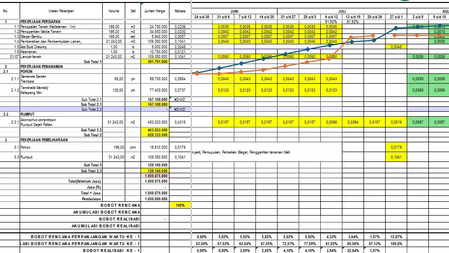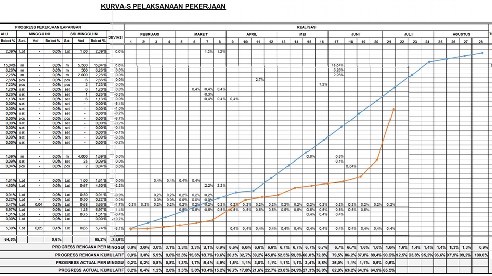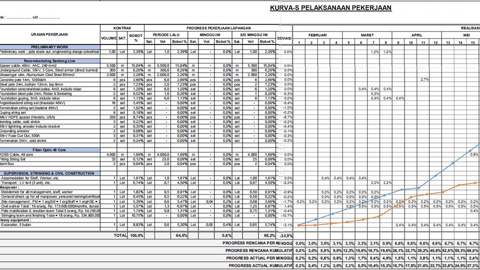 Rp150,0 rb1. Rekap progres mingguan/bulanan 2. Update kurva-S dan deviasi realisasi 3. Monitoring pekerjaan berdasarkan bobot dan jadwal 4. Reminder pekerjaan mingguan ke tim proyek