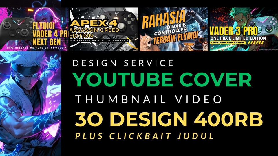 BIKIN TAMPILAN PUTAR VIDEO YOUTUBE MU MENARIK DAN BANYAK YANG VIEW Desain untuk cover video Youtube / Thunbnail sesuai tema video dengan menggunakan stok gambar video atau AI Ditambahkan Judul video dengan Pemilihan desain font dan judul yang click bait!