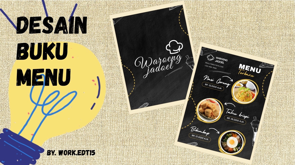 Hi! Apakah anda butuh desain cetak yang profesional, menarik dan sesuai kebutuhan? Saya hadir untuk membantu Anda membuat desain berkualitas tinggi untuk keperluan bisnis anda . LAYANAN : Desain buku menu FORMAT YANG DITERIMA : JPG PNG PDF Standar