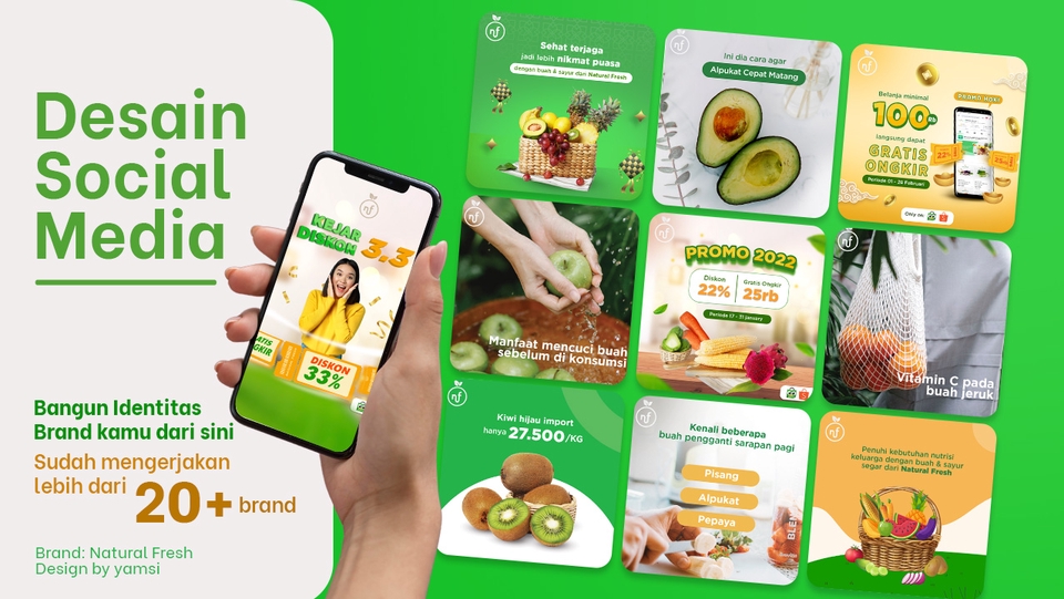 Hallo saya yamsi sudah berpengalaman di social media desain 6+ Tahun saya telah mengerjakan berbagai macam brand seperti tekhnologi, kecantikan, makanan, desain tersebut bertujuan untuk promosi,Y uk kolaborasi! Ingin akun media sosial kalian tampil menarik, rapi, dan profesional? Saya siap membantu membuat desain konten social media yang kreatif, modern, dan sesuai dengan identitas brand kalian Dapatkan: Desain feed instagram dalam bentuk PNG/JPEG Revisi desain 2x Desain kreatif yang profesional Gratis Konsultasi gaya desain Gratis konsultasi komunikasi untuk promosi Tools design : Adobe photoshop & Adobe illustrator Catatan: Mohon berikan detail konten, ukuran, dan konsep yang diinginkan sebelum memulai Jika ada brand guideline (logo, warna, font), mohon sertakan untuk hasil maksimal Langkah Pekerjaan 1. Konsultasi : diskusi perihal latar belakang produk atau brand yang kalian miliki, berikan informasi detail kepada kami. Konsultasi terlebih dahulu apa yang dibutuhkan untuk promosi pada bisnis. 2. Eksekusi desain : proses desain berdasarkan paket yang diambil 3. Kirim hasil : pengiriman file desain dengan kualitas tingga JPEG & PNG