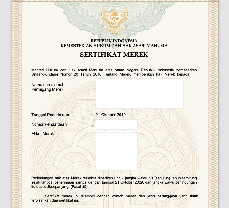 Rp2,9 jtKonsultasi dan rekomendasi pemilihan kelas Merek Persiapan dan pengajuan dokumen pendaftaran Pendampingan hingga penerbitan sertifikat merek Sudah termasuk Biaya Pendaftaran Merek / PNBP Rp. 1.800.000