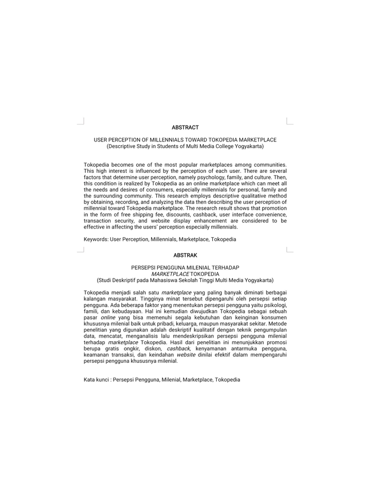 Saya lulusan Sastra Inggris UIN Sunan Kalijaga Yogyakarta tahun 2017. Memiliki pengalaman dalam bidang menerjemahkan berbagai macam teks seperti abstrak, jurnal, dan sebagainya dari bahasa Indonesia ke bahasa Inggris Vice Versa. Saya juga dapat melakukan pekerjaan dalam bidang content writing.