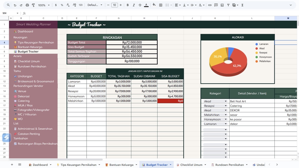 Pembuatan Budget Tracker Template Spreadsheet atau sejenisnya