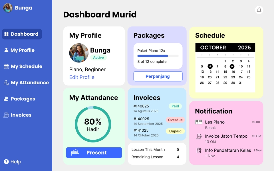 Saya dapat membantu bisnis maupun personal membuat desain grafis seperti logo, konten promosi, produk, website, hingga materi sosial media agar terlihat lebih menarik dan audience friendly!