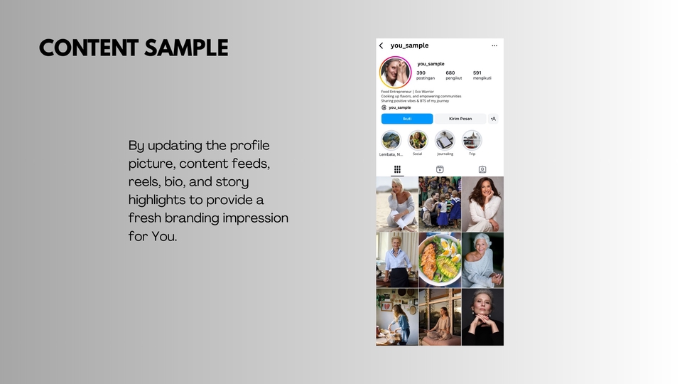 Membuat/membangun personal branding di social media. Menjelaskan hal apa yang harus dilakukan (do and don't) di social media, mengarahkan klien dalam membangun personal branding di social media.