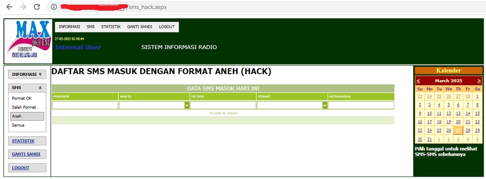 Rp5,0 jtTerdiri dari pengelolaan Setup Aplikasi, Data User, Data Penyiar, Data Petugas, Data Kontributor, Data Narasumber, Data SMS masuk, Data Topik, Log Aktifitas, Statistik.