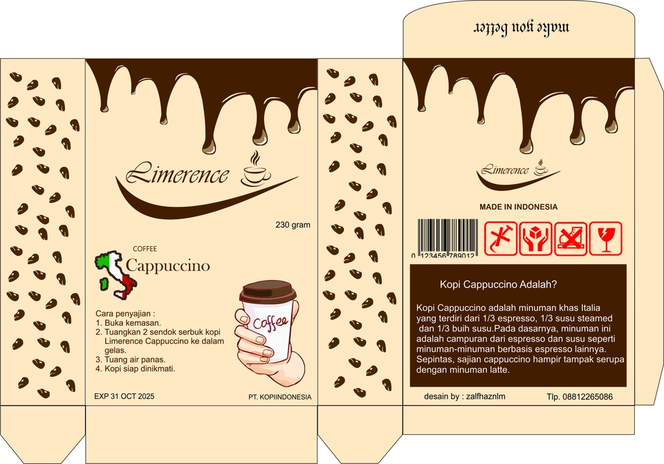 Kemasan bukan sekadar wadah, melainkan cerminan esensi sebuah produk. Di Tangan Kreatif, saya tidak sekadar mendesain kemasan; saya menciptakan karya seni yang membangun identitas unik untuk setiap produk. Dengan sentuhan inovatif dan pengalaman yang mendalam, saya menerjemahkan visi dan nilai produk menjadi desain kemasan yang memukau. Setiap garis, warna, dan elemen grafis yang saya pilih dengan teliti untuk menciptakan kemasan yang mencerminkan keindahan, keandalan, dan kualitas produk Anda. Dari konsep awal hingga peluncuran, saya bekerja erat dengan Anda untuk memastikan bahwa setiap detail terpenuhi sesuai dengan standar tertinggi. Saya berkomitmen untuk menyampaikan pesan produk Anda dengan jelas dan menarik, memastikan bahwa kemasan tidak hanya menarik perhatian, tetapi juga membangun hubungan yang langgeng dengan konsumen. Percayakan pada Tangan Kreatif untuk membawa produk Anda ke tingkat berikutnya melalui desain kemasan yang menginspirasi dan mengesankan. Langkah Pekerjaan 1. Brief dari klien 2. Mencari referensi dan ide 3. Sketsa 4. Visualisasi
