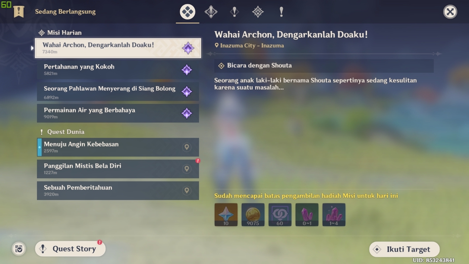 Daily quest rawat akun selama 7 hari
