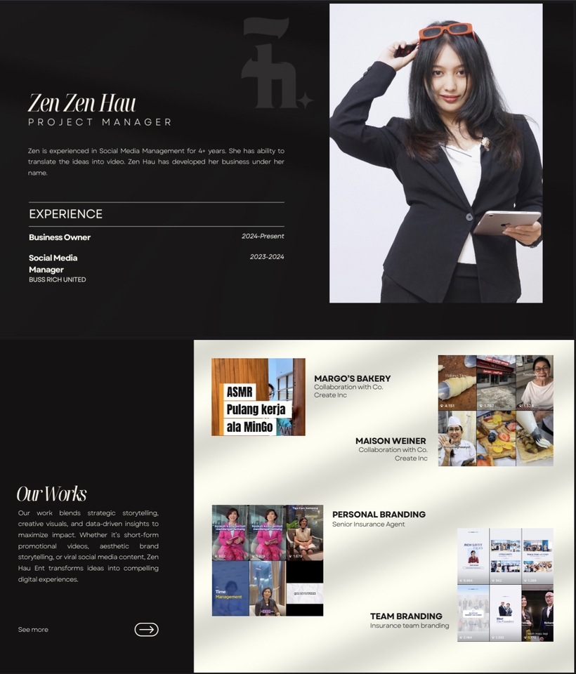 Zen suka bikin konten sosial media dan mempunyai beberapa pengalaman dalam menghandle kalendar konten dan ide konten di sosial media, seperti di Instagram dan TikTok. Zen hanya mempunyai basic editing video skills dan voice over.
